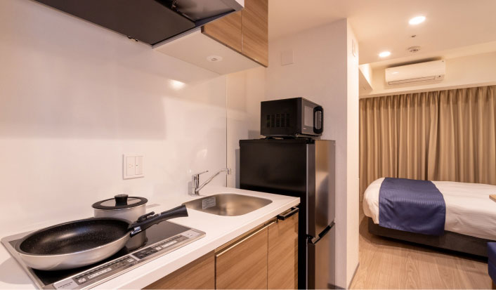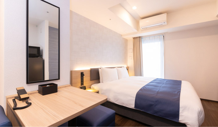 滞在ホテルは、立地も広さも“ちょうどよい”京急 EXイン 京急蒲田駅前。2024年11月にオープンしたレジデンスタイプのお部屋にお泊りいただけます。ダブルベッドのため、お連れさまの宿泊も可能!産後ケアサービス専用のフロアですので、周りの宿泊者を気にせずに安心してゆっくりおくつろぎいただけます。